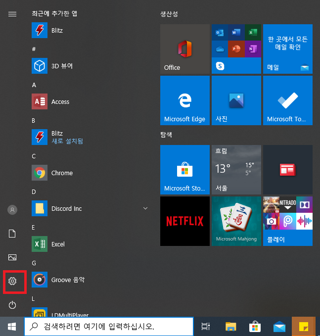 2. 다음으로 좌측 하단 '톱니 바퀴' 모양의 아이콘을 선택합니다. (설정 메뉴 선택)