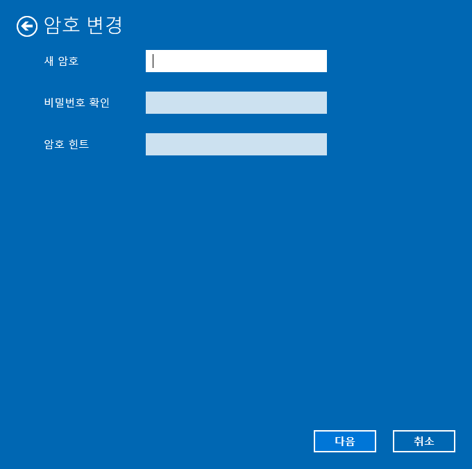 10. 새 암호/비밀번호 확인/암호 힌트를 모두 비워둔 채 다음을 선택하셨다면 아래와 같은 화면을 확인할 수 있습니다.