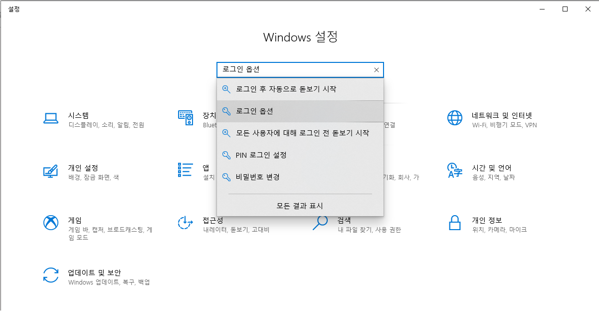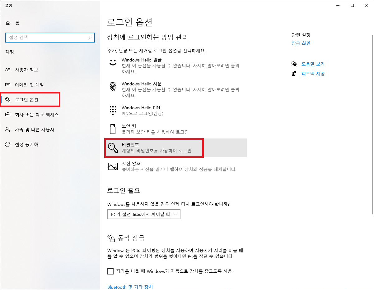 5. 설정 - 로그인 옵션 - 비밀번호