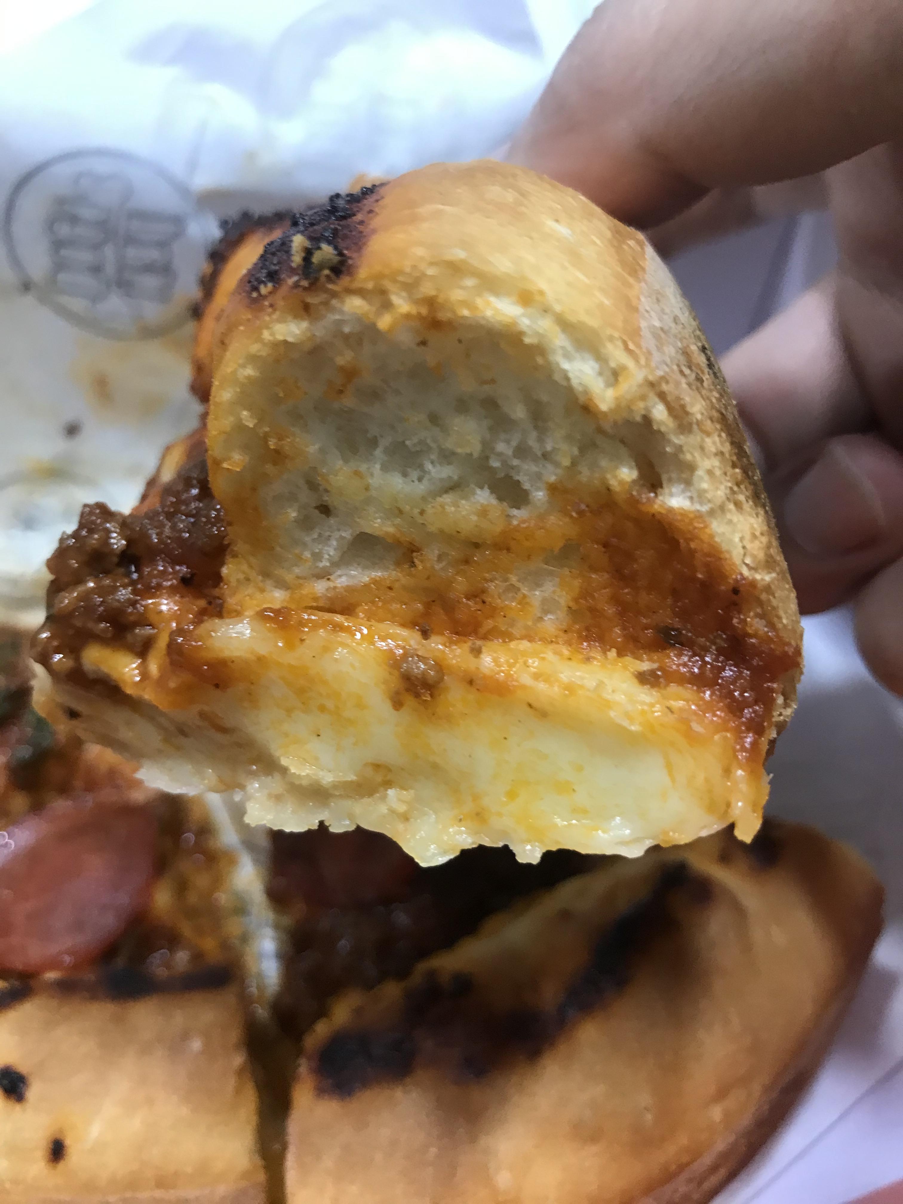 일단 아래 사진과 같이 피자가 전체적으로 두툼하고 짧은 인상이다.
