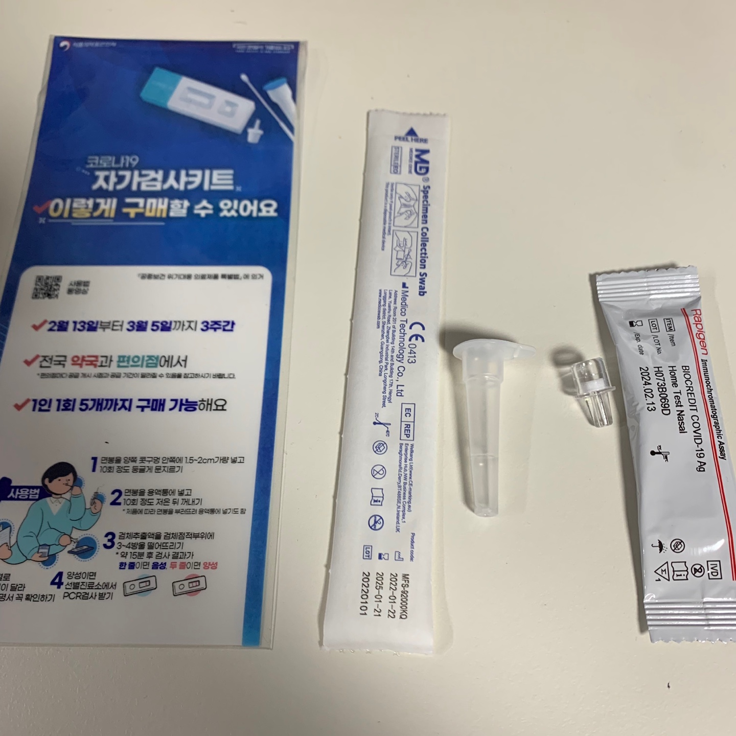 구성품은 단순하고, 크기나 무게가 있는 제품은 아니었다. 보건소에서 검사할 때 사용된 물품들과 동일했다.