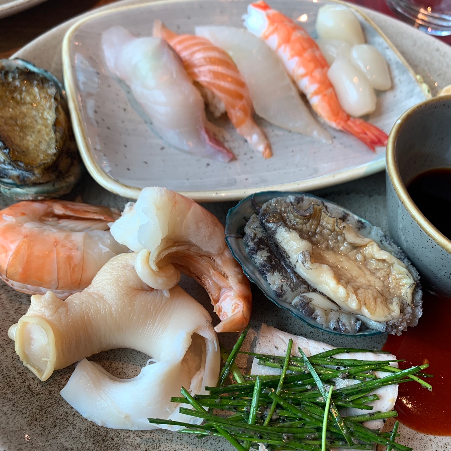 생 전복과 소라는 정말 맛있었는데 생각보다 새우는 제 입맛에는 별로 였어요. 약간 퍼석? 한 느낌? 그리고 초밥,, 진짜 맛있었어요.