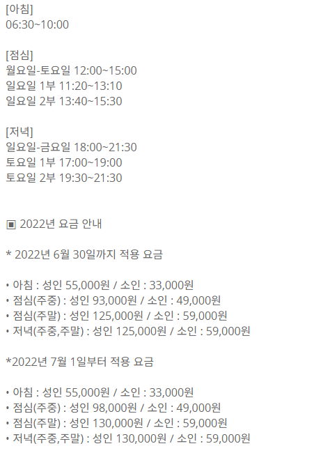 아래에는 시그니엘 부산 더뷰 운영시간과 가격이에요. 공식 홈페이지 참고했습니다.
