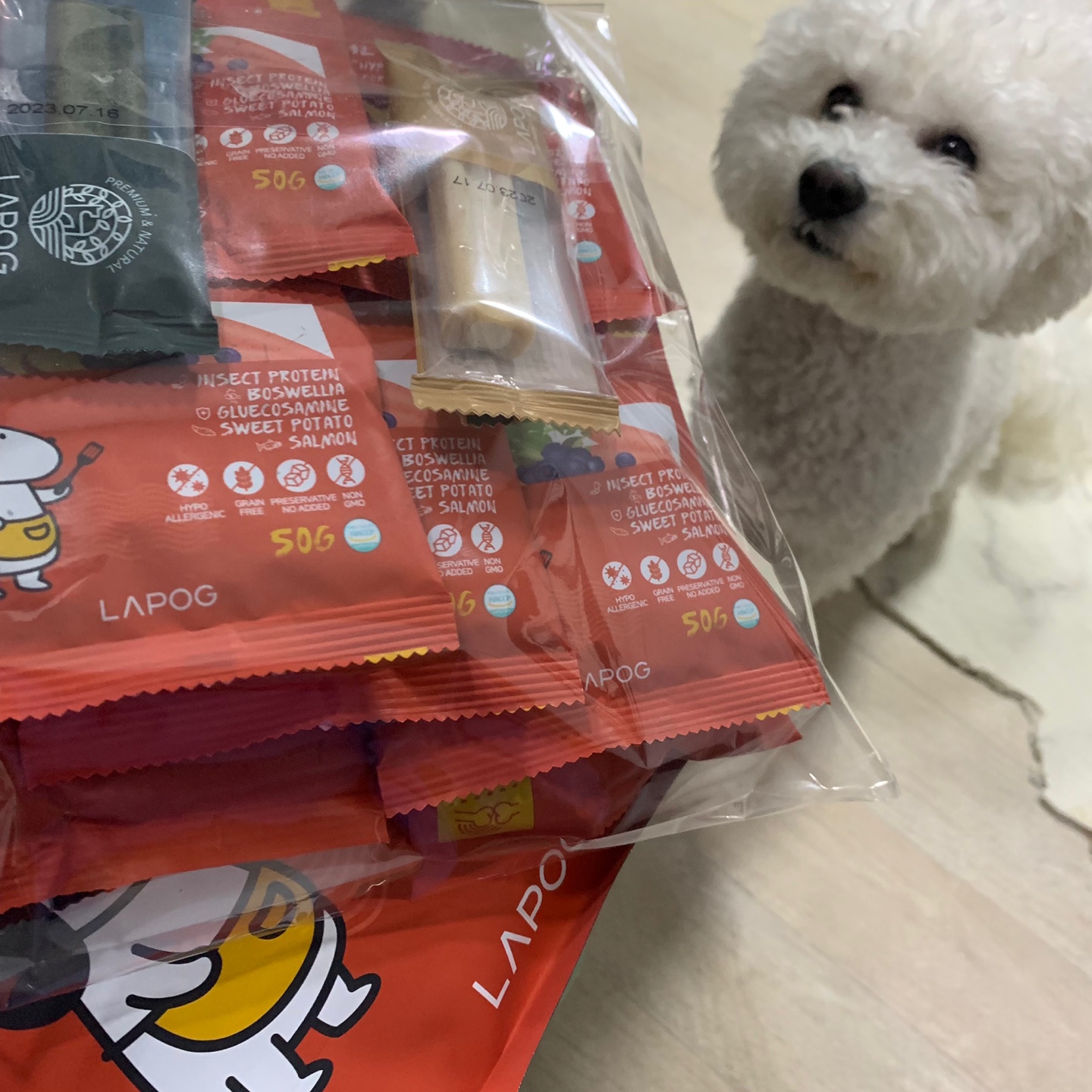 강아지만 잘 먹는다면 냄새는 참을 수 있지만 잘 먹지 않아서 인섹트 업 사료는 바로 포기했고, 눈물 사료를 찾다가 지인의 추천으로 라포그 인섹트 곤충 사료를 알게 되었는데요. 사료에서 냄새가 별로 안 난다고 하더라구요. 그 말 듣자마자 정말 바로 주문했습니다.