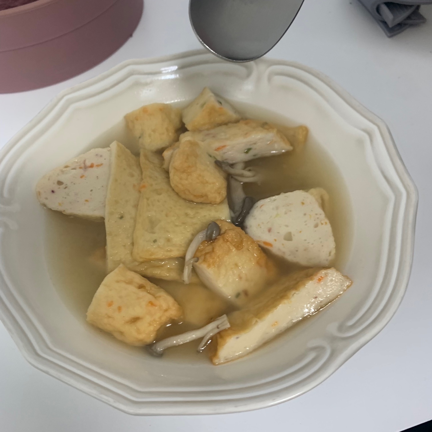 미리 사둔 삼진 어묵을 이용해 버섯, 무와 함께 간단히 요리를 한다. 보글보글...