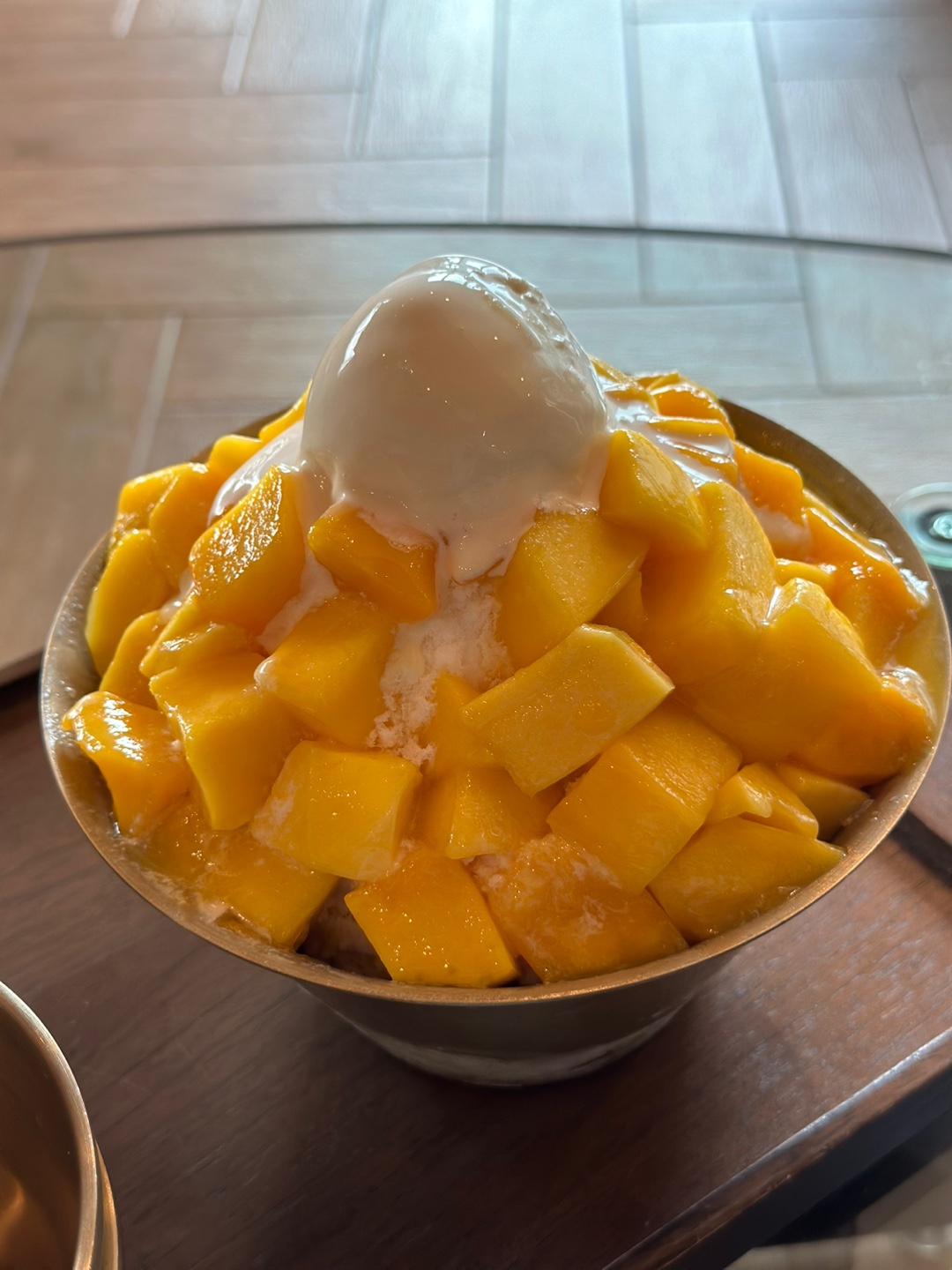 다행히 겨우 자리는 확보하고 주문한 음료와 빙수를 기다렸다. 그리고 마침내 등장한 망고 빙수!!