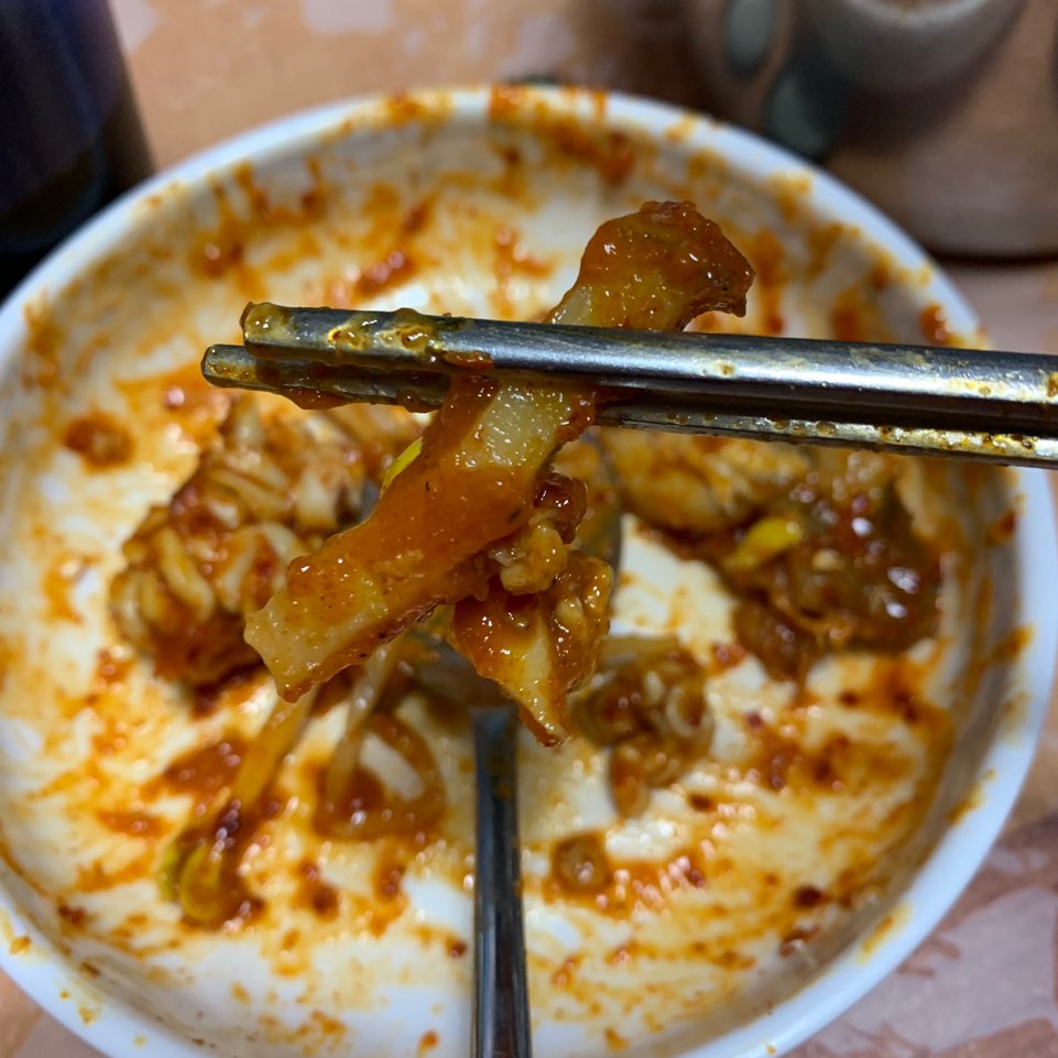 요건 뽈데기찜 중짜이구요 중간맛으로 시켰고 고니 추가했습니다.(제가 고니 덕후에요.)