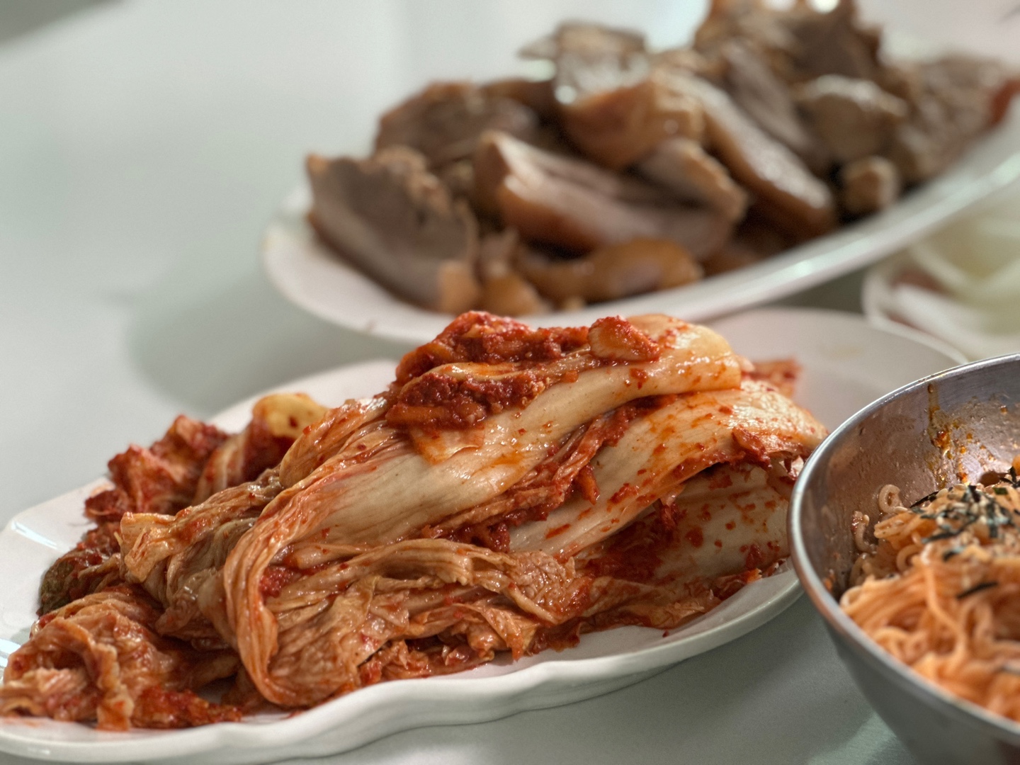 그리고 앞서 언급한 김치가 빠질 수 없다. 길게 잘라둔 생김치를 그대로 돌돌 말아(?) 고기와 함께 먹으면 그야말로 일품이다. 나란히 있는 모습만 보아도 다시 한번 군침이 도는 건.. 어쩔 수 없나보다.