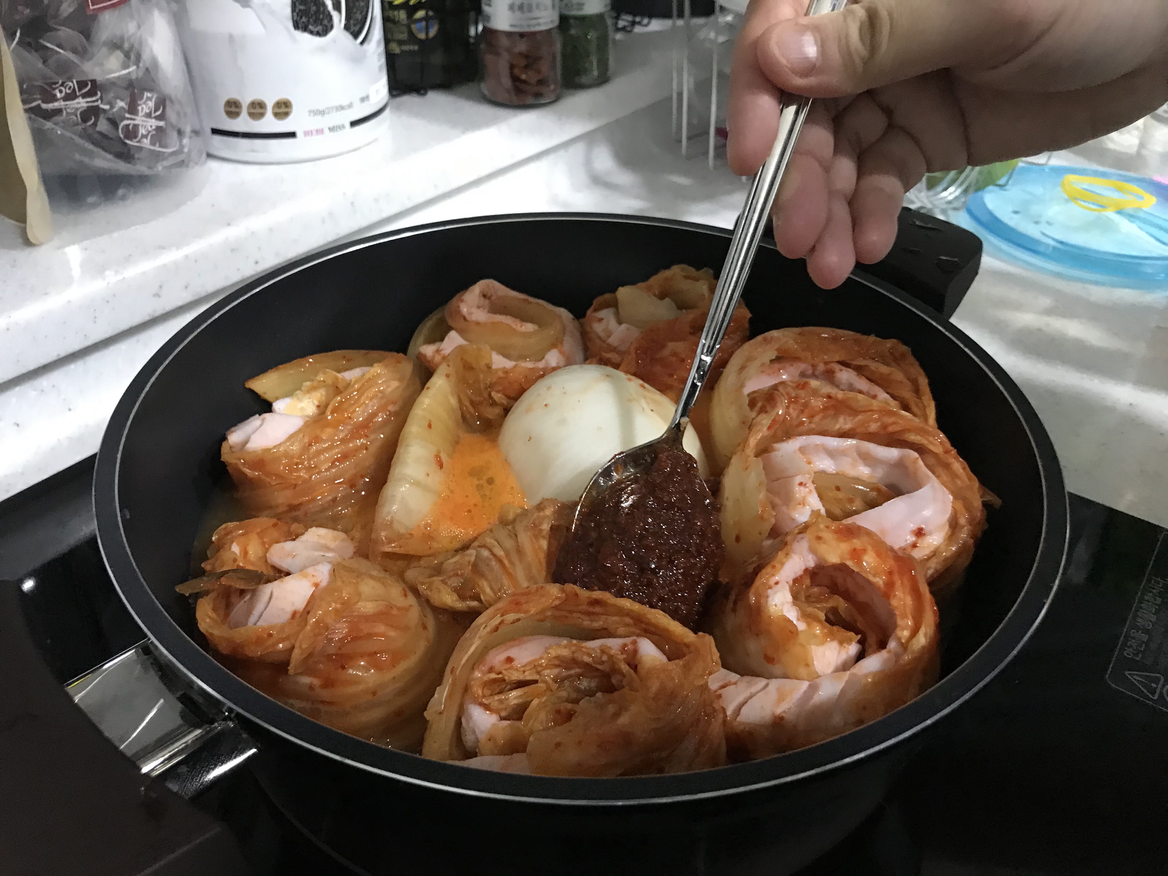 양파를 넣어 보다 맛이 사는 것 같고, 묵은지의 짠맛도 살짝 잡아주는 기분입니다.