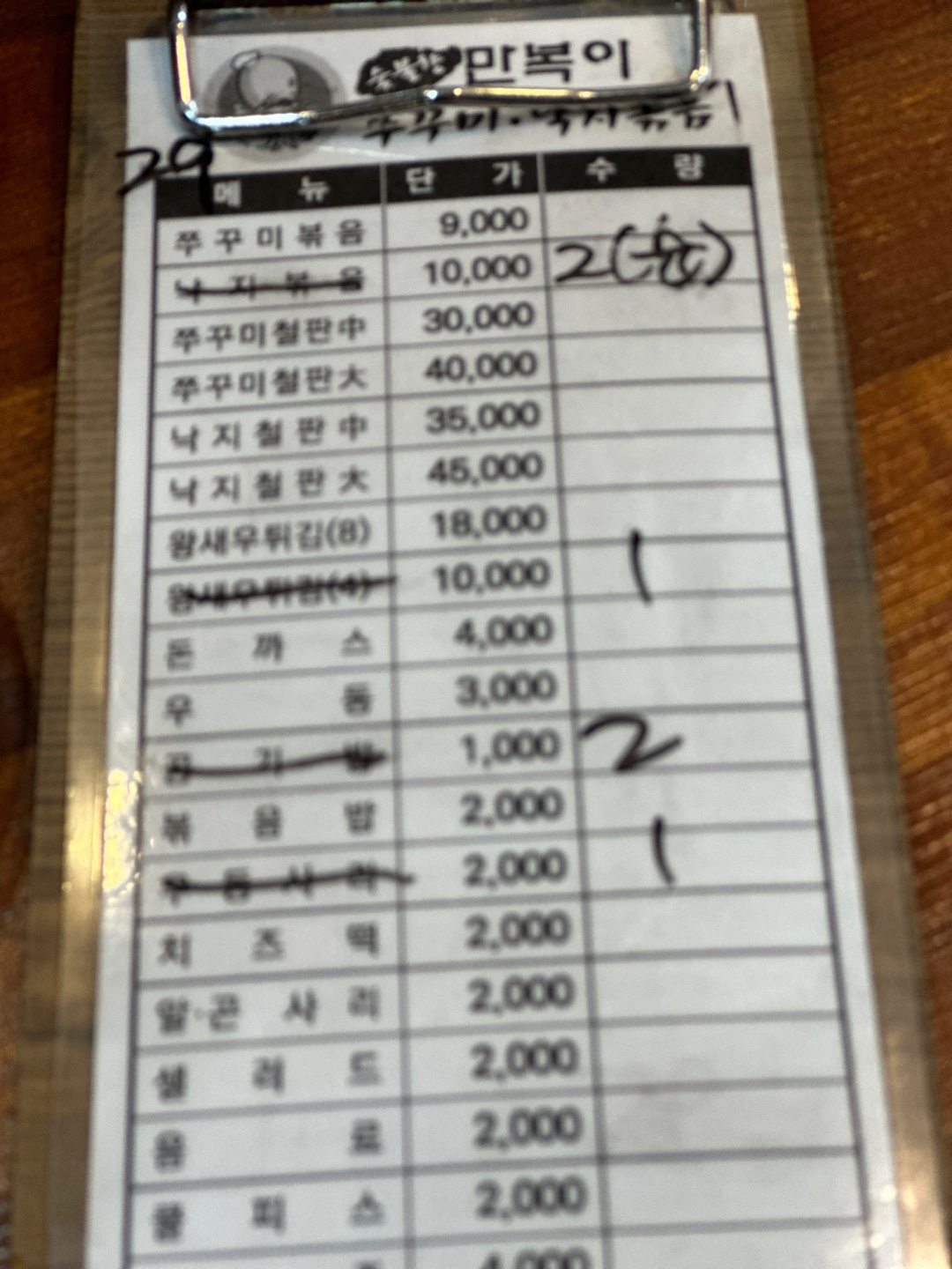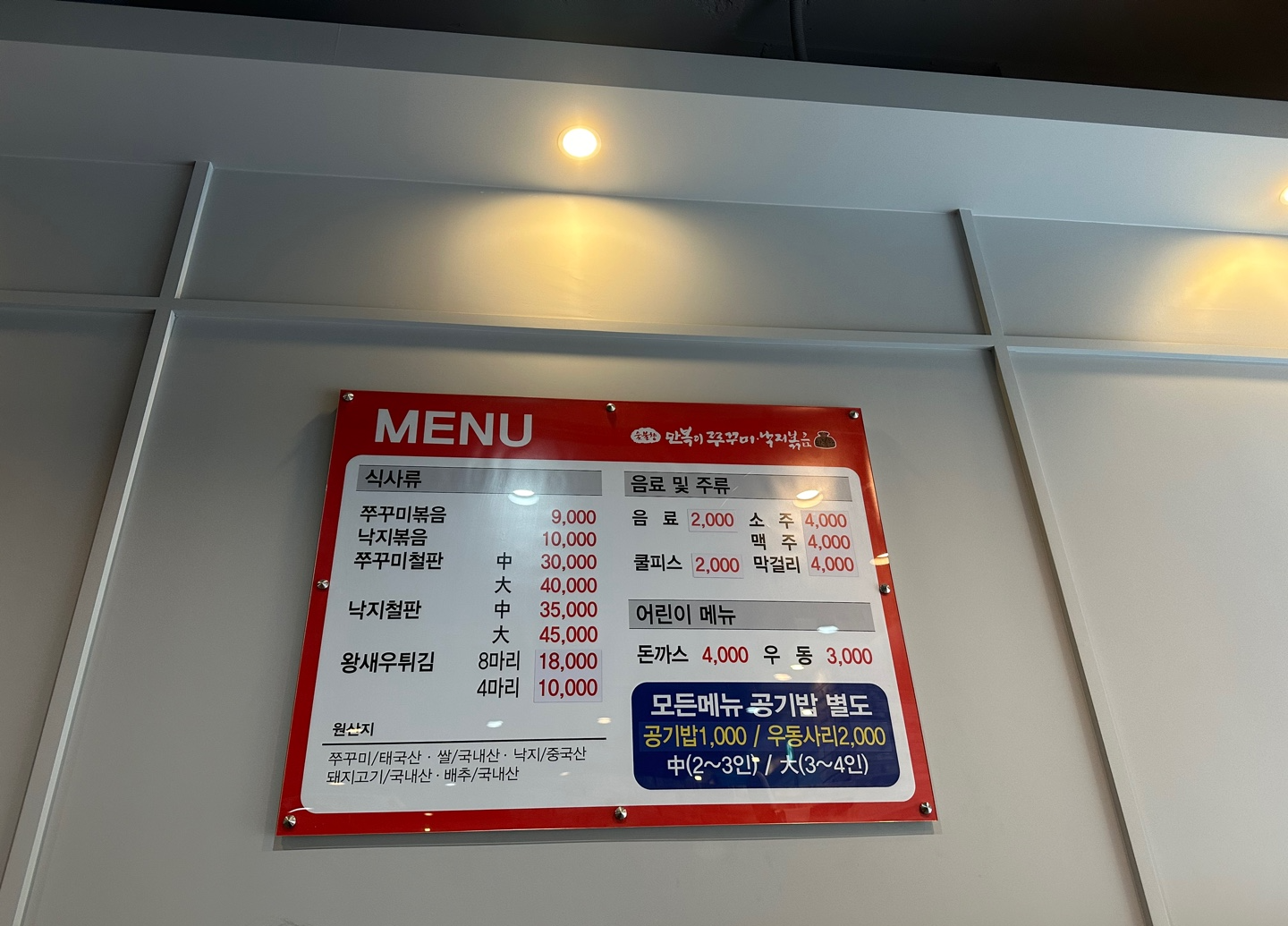 메뉴는 아주 심플하다. 쭈꾸미&낙지볶음 그리고 쭈꾸미&낙지철판 이렇게 나뉜다고 볼 수 있다.