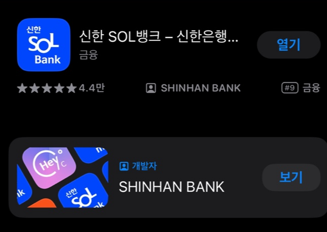 먼저 스토어에서 신한 SOL뱅크 - 신한은행 앱을 다운로드한다.