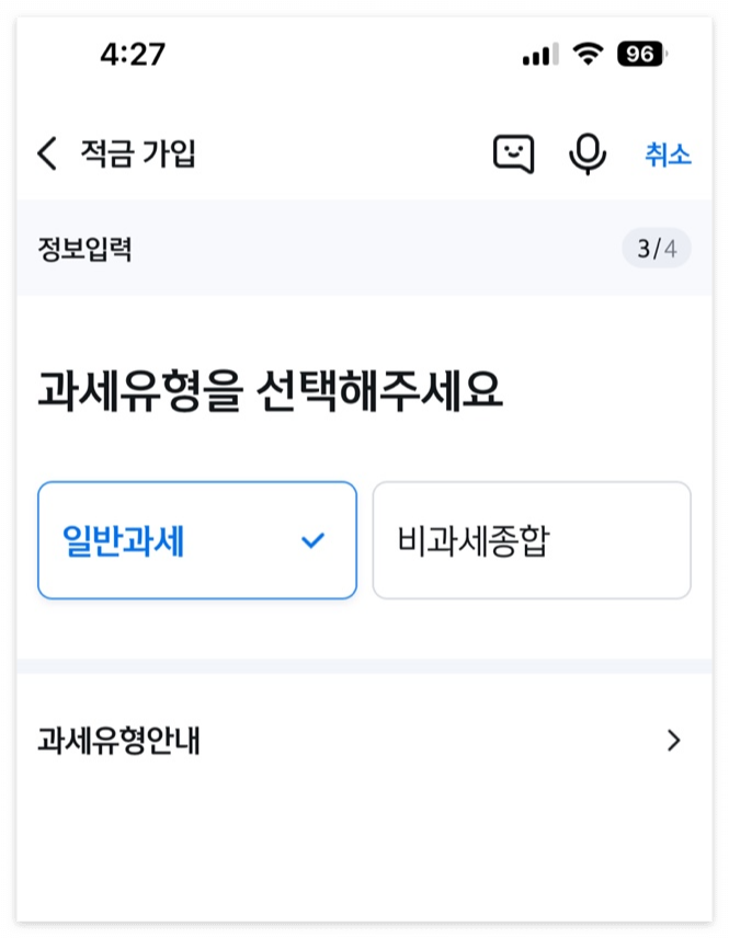 유형에는 일반과세와 비과세종합 버튼이 존재한다. 본인이 해당되는 경우에만 비과세종합을 선택하면 되는데 일반적으로는 일반 과세를 선택할 수 있다.