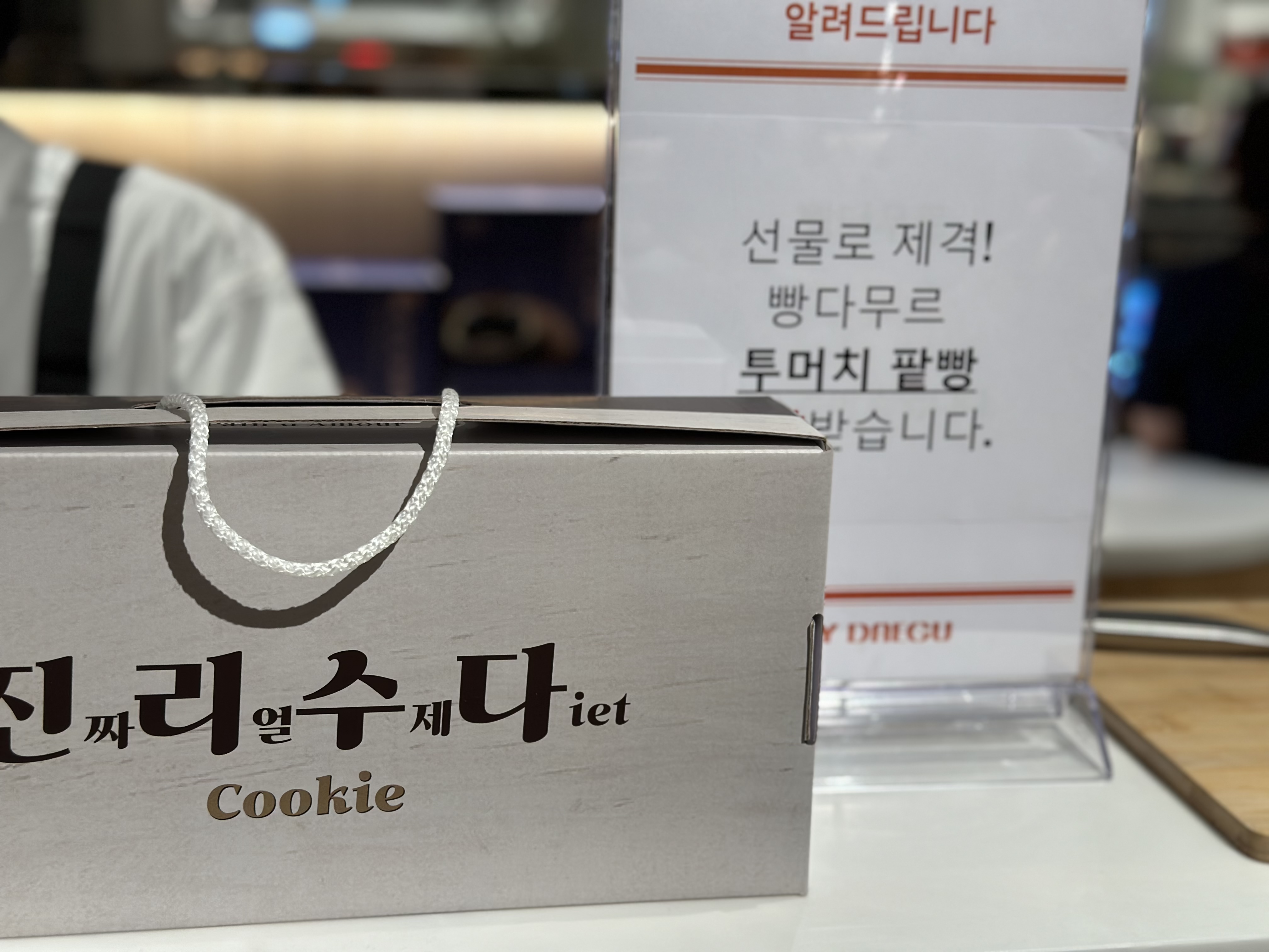 밥을 먹고 쇼핑을 하는 와중에 작은 이벤트가 있어 아내와 함께 참여했다. 뽑기(달고나)를 해서 성공하면 작은 경품을 주는 이벤트였다. 나는 '별' 모양을 뽑았고.. 아내는 '토끼'를 뽑았다. (모양은 랜덤이다)