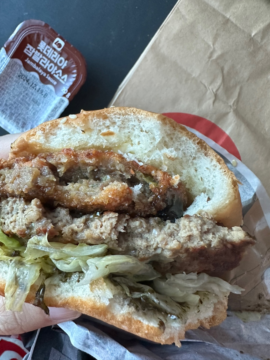 우리가 고기를 먹을 때 깻잎과 상추를 먹는 것은 너무나도 자연스러운 일이지만 햄버거 조합에서는 감히(?) 상상하지 못했던 맛이기 때문이다. 막상 먹어보면 아무런 이질감 없이 정말 맛있게 먹을 수 있지만 말이다.