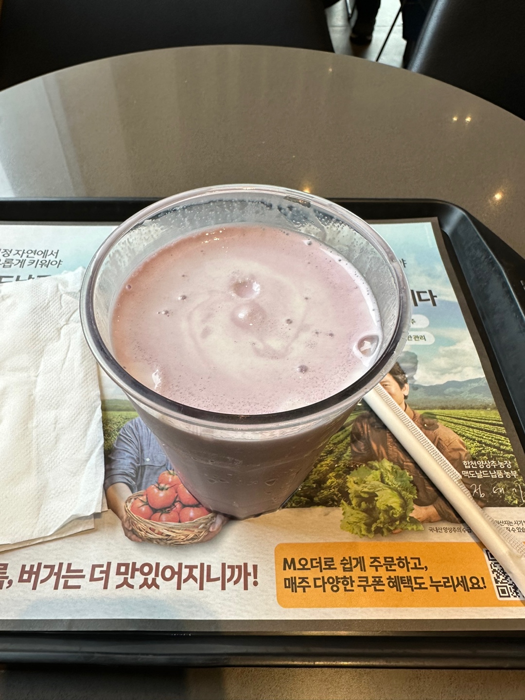 밀크쉐이크를 바탕으로 블루베리와 라즈베리 맛이 나는 것 같습니다. 그런데 생각한 것 이상으로 아주 많이 단 맛이 나니 단 것을 평소 즐겨먹지 않는 사람들에게는 정말 진하게 느껴질 수 있습니다.