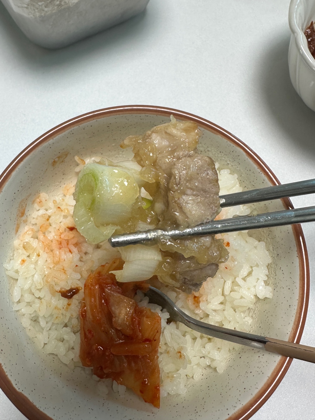 개인적으로는 후자를 선택해보았는데요. 그냥 먹는다면 살짝 기름진 맛이 있을 법도 하지만 강렬한 맛의 김치와 함께 먹으니 오히려 깔끔하고 좋았습니다.