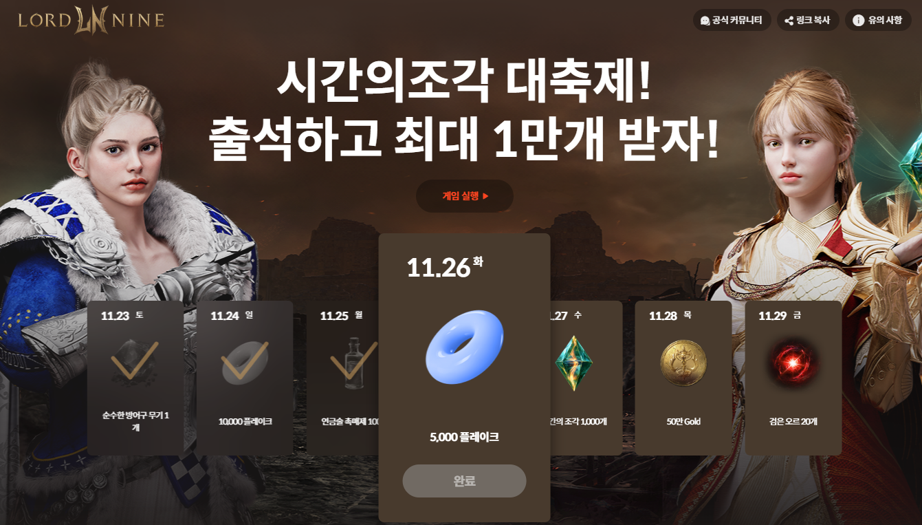 1. 로드나인 출석(플레이)