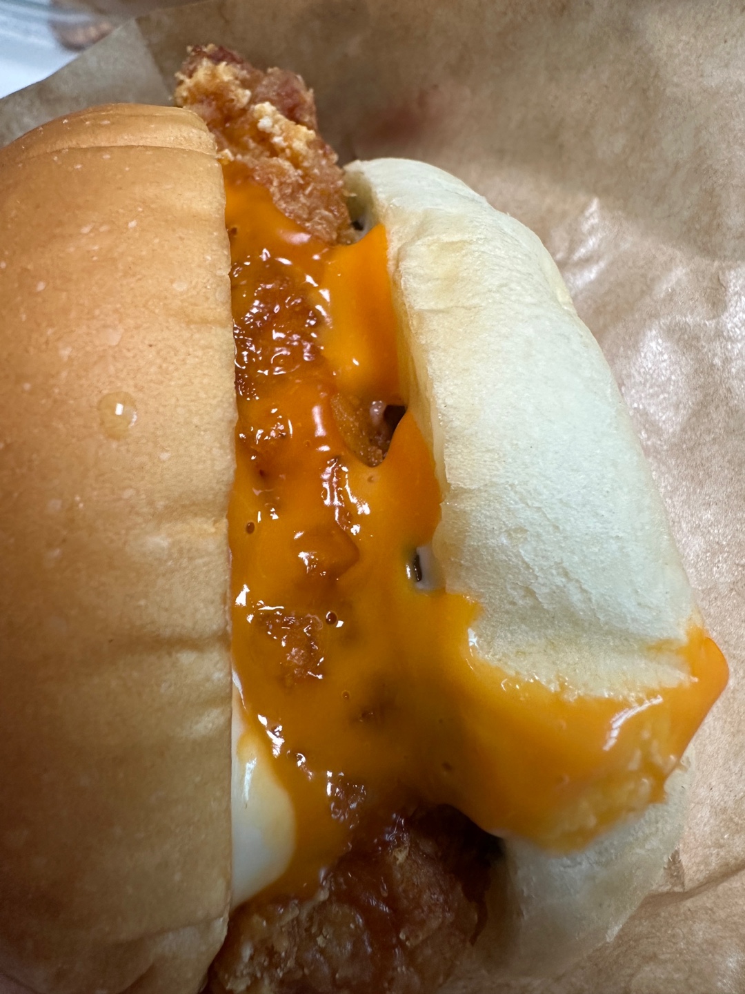 그냥 제가 알고 있는 정도(?)의 맛인데.. 뭐라고 표현하면 좋을까요? 그냥 시중에 있는 맛 정도인데... 대신 치킨 패티는 제가 먹어본 브랜드 중에서도 꽤나 맛있는 편에 속했습니다. 촉촉한 것이 질기지도 않고 특유의 비릿한 맛도 없어 다행이었습니다.