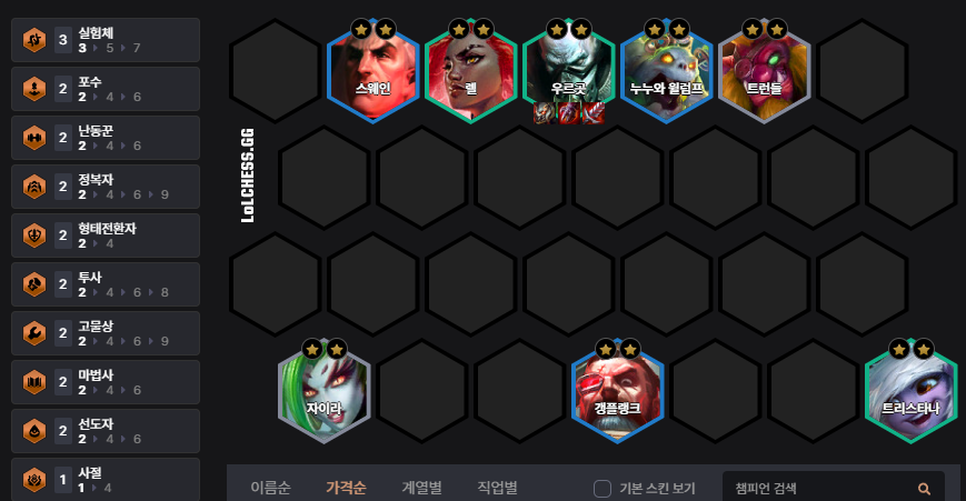 8렙 기준으로 잘 나오는 기물로 완성해주시면 됩니다. (트런들 or 엘리스는 선택의 영역)