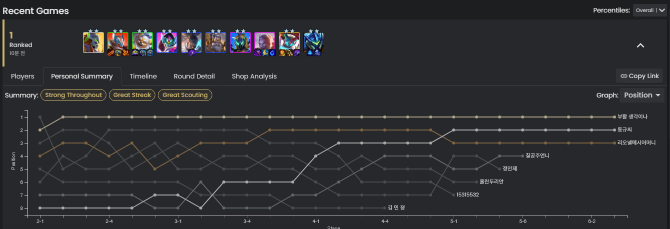 4. 빌드업 과정에서 갱플랭크의 힘이 빠지지 않아 게임이 끝날때까지 지속 1위를 달성할 수 있었다.