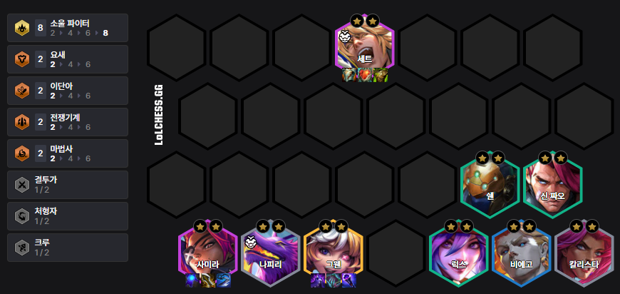 1. 초당 공격력/주문력이 오르는 특성을 최대한 이용하기 위해 세트만 1열에 탱커로 배치