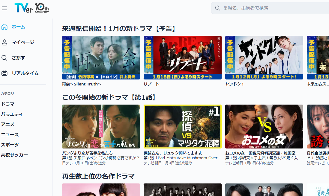 TVer(ティーバー)|見逃し無料配信中!ドラマ、バラエティ、アニメの人気番組が動画見放題