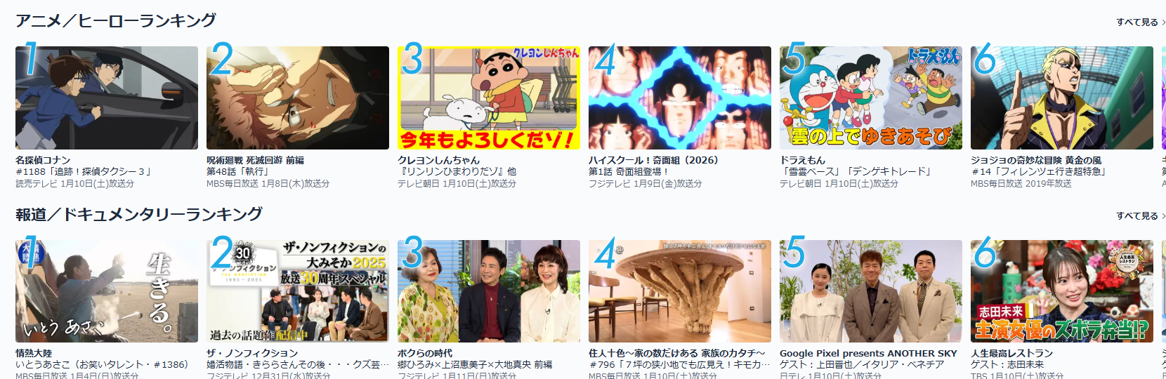 TVer(ティーバー)は国内最大級の見逃し無料配信動画サービスです。ドラマ、バラエティ、アニメ、報道・ドキュメンタリー、スポーツなど人気番組を毎週800番組以上見放題!放送中の最新