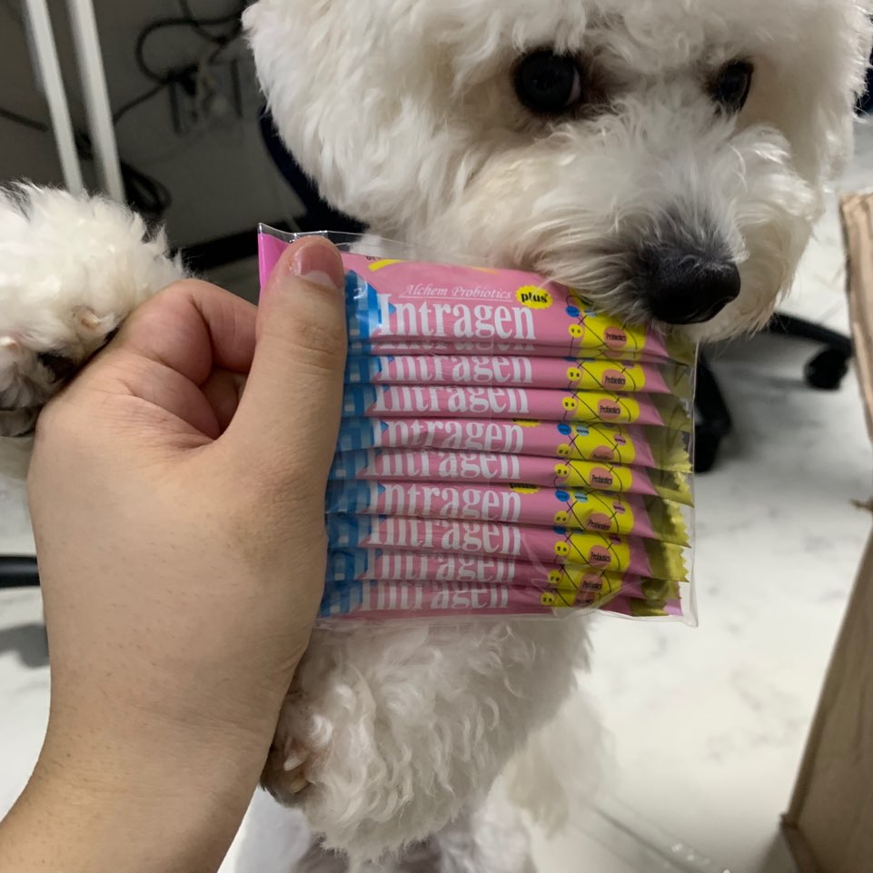 구매 당시 제품 설명에 기재된 바에 따르자면, 인트라젠은 위와 장 건강을 개선하여 분변의 악취를 제가 할 뿐 아니라 피모를 윤택하게 하고 각종 질변에 대한 면역력 증강에 효과를 발휘한다고 하네요.