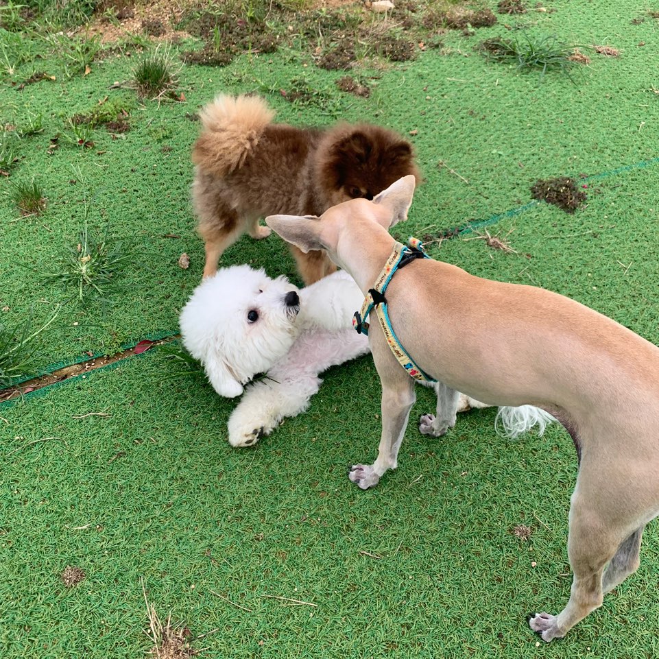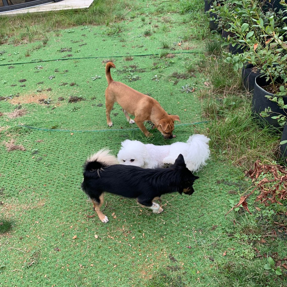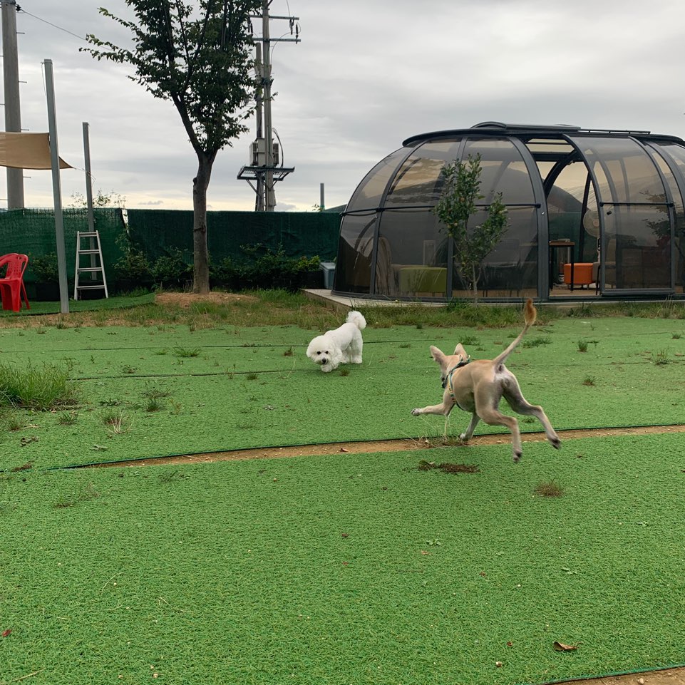 그렇지만 상주 견과 호텔링을 하는 강아지들이 많아 운동장에 6마리 정도는 있었던 것 같아요.