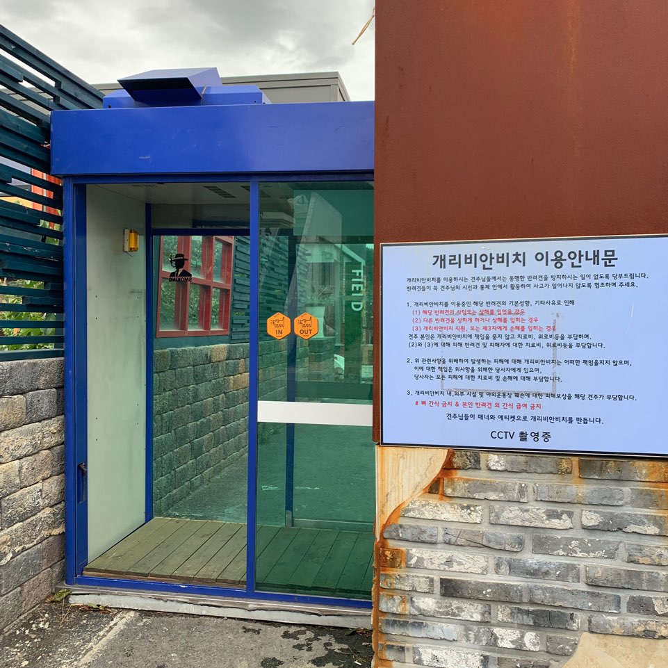 운동장 한쪽에는 배변을 치울 수 있는 비닐과 휴지통이 위치해 있어요. 저는 휴지통을 찾지 못해 사장님께 여쭈어 보았.. 여러분들은 입구 왼쪽에 위치하고 있으니 편하게 이용하시길 바래요. (ง •̀灬•́)-•