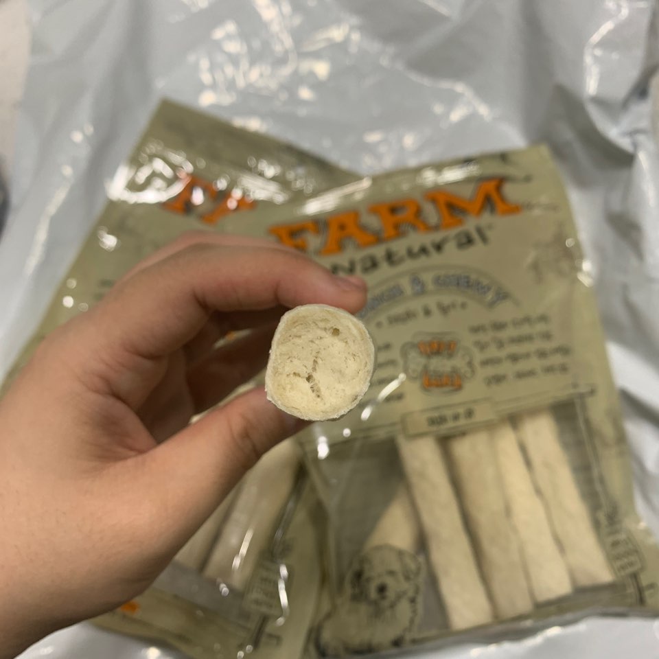 저희 감자는 워낙 씹는 걸 좋아해서 플라스틱이나 단단한 걸 물어뜯기에 일반 개껌에 비해 단단한 개껌을 찾다 구매하게 되었습니다.