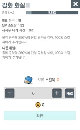 강화 화살은 현재 승급을 하였기 때문에 추가 피해를 입히는 능력이 추가되어 있습니다. 강화 화살을 단일 공격이 강하게 적용되며 재 사용 대기시간이 6초이기 때문에 빠르게 재 사용하여 몬스터를 처치하는 데 있어 중요한 역할을 하고 있습니다.