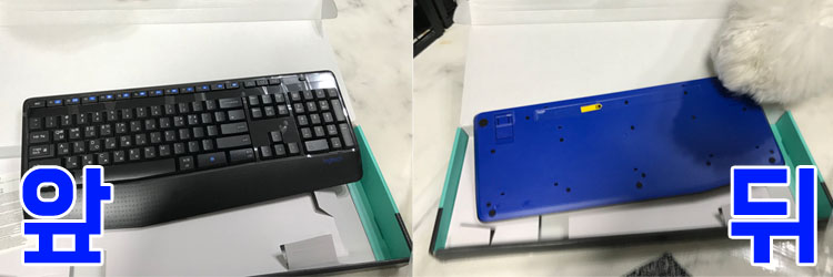 뒷면은 키보드와 동일하게 전면부가 파랑으로 도배되어 있습니다. 하지만 키보드에 비해 면적이 적어서인지 상대적으로 나쁜 색상으로 생각되진 않았습니다.