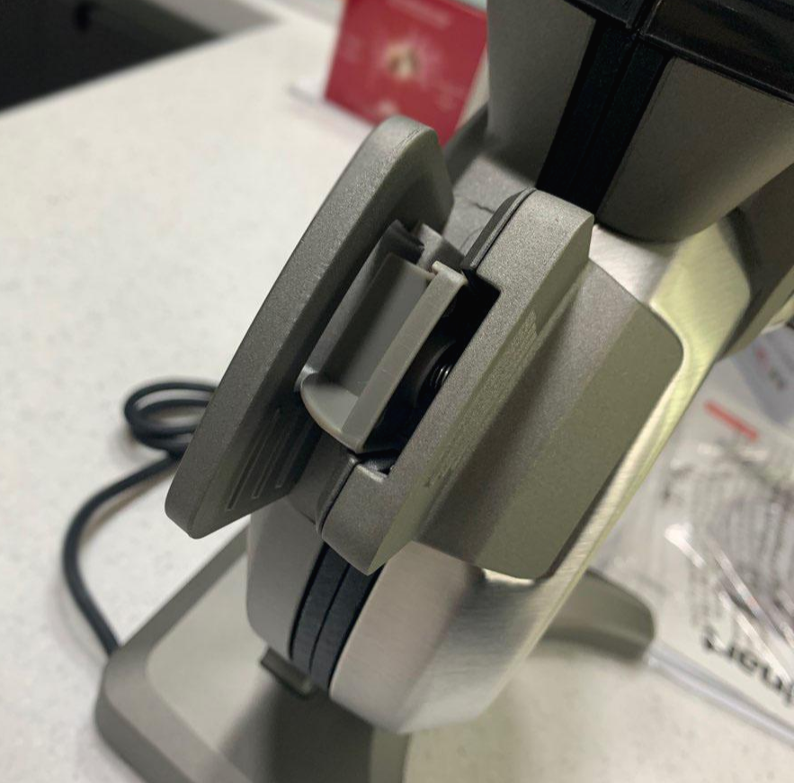 와플을 꺼낼때는 옆에 버튼을 누르면 열린답니다. 뜨겁지 않게 되어있지만 와플을 굽고 나서 열로 인해 조금 뜨거울 것 같아서 저는 장갑을 끼고 연답니다.