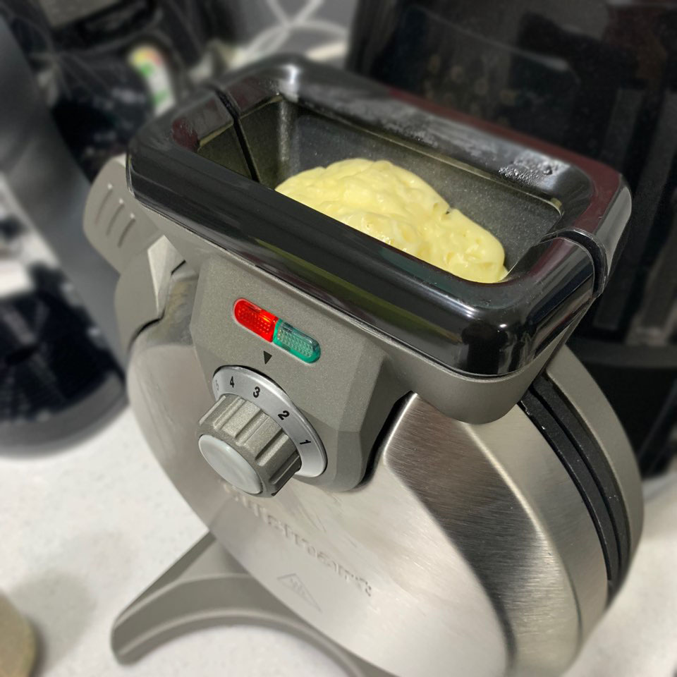 와플 메이커의 전기 코드를 꼽고 온도를 설정하면 예열이 진행되고, 예열이 완료되면 알림이 울려요. 그때 부어주시면 됩니다. 뜨거우니 조심조심ʕっ•ﻌ•ʔっ
