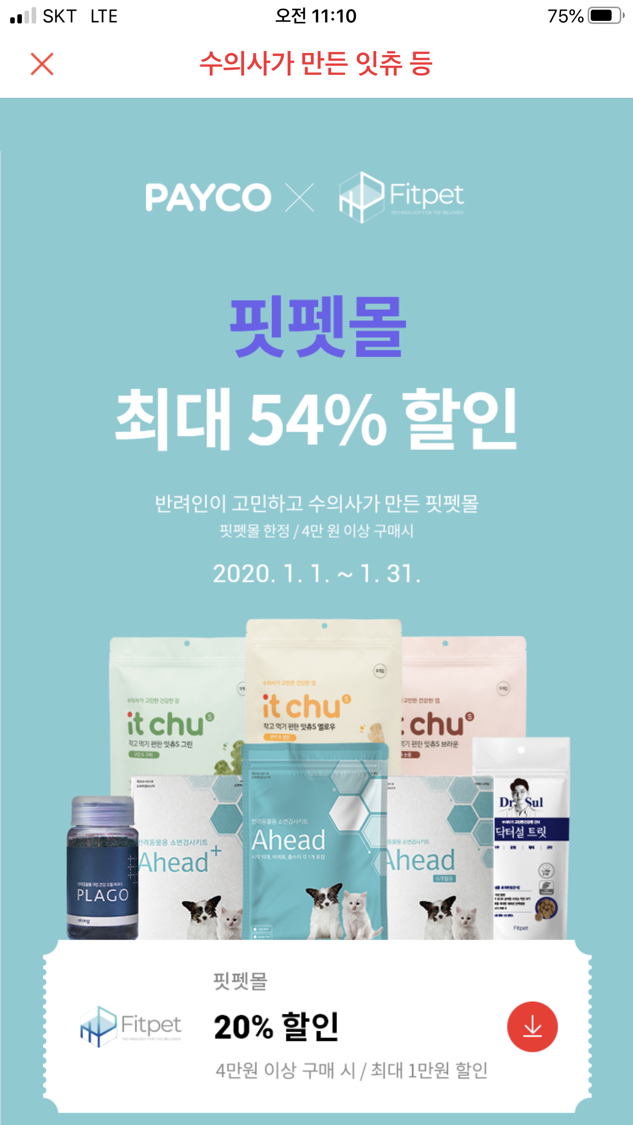 여튼 이번에 페이코와 잇츄 판매처(핏펫몰)간의 제휴 이벤트가 진행되고 있으니 참고바랍니다.