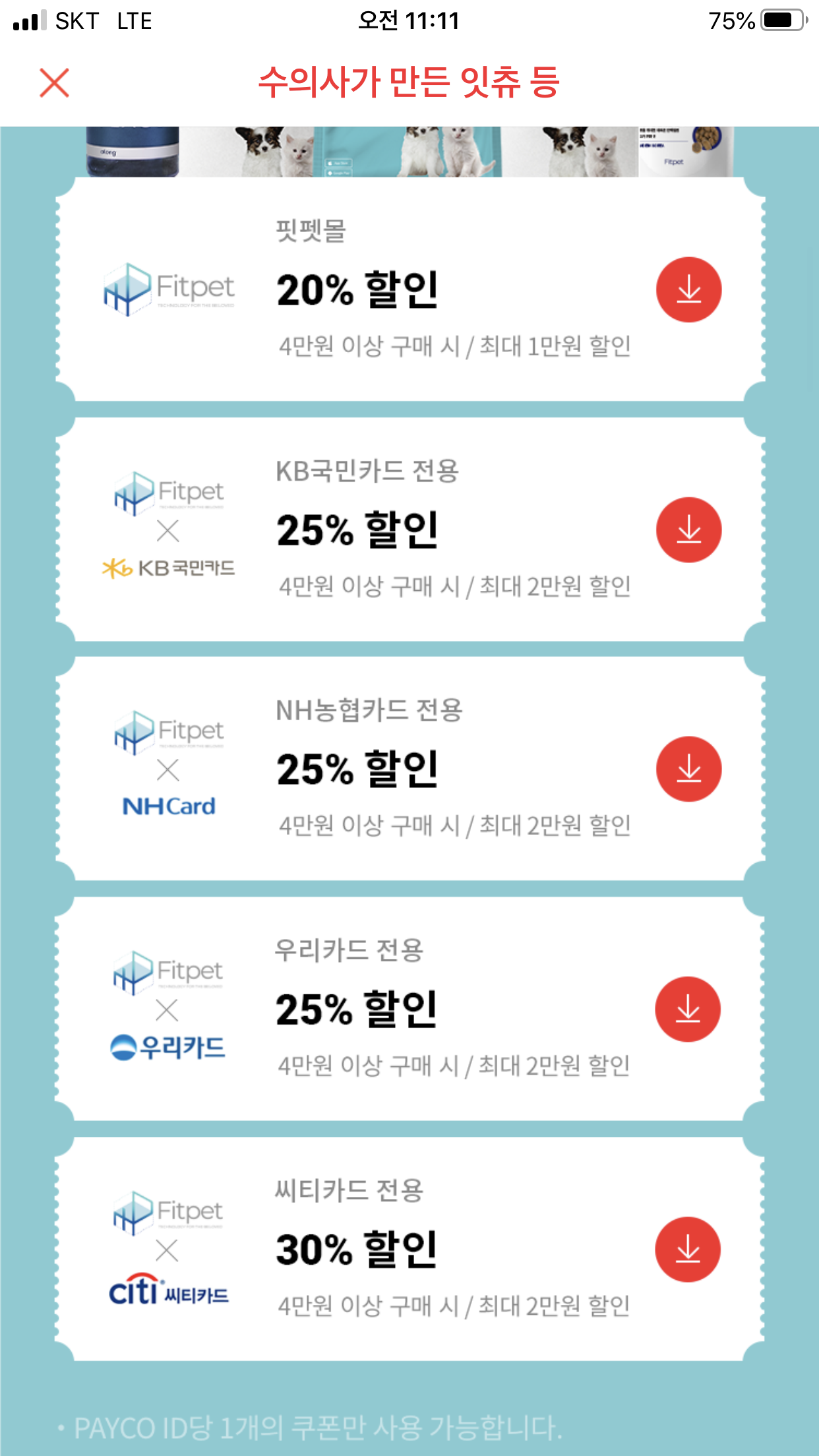 조금 더 보니 핏펫 상품에 대한 많은 할인 정보가 확인됩니다.