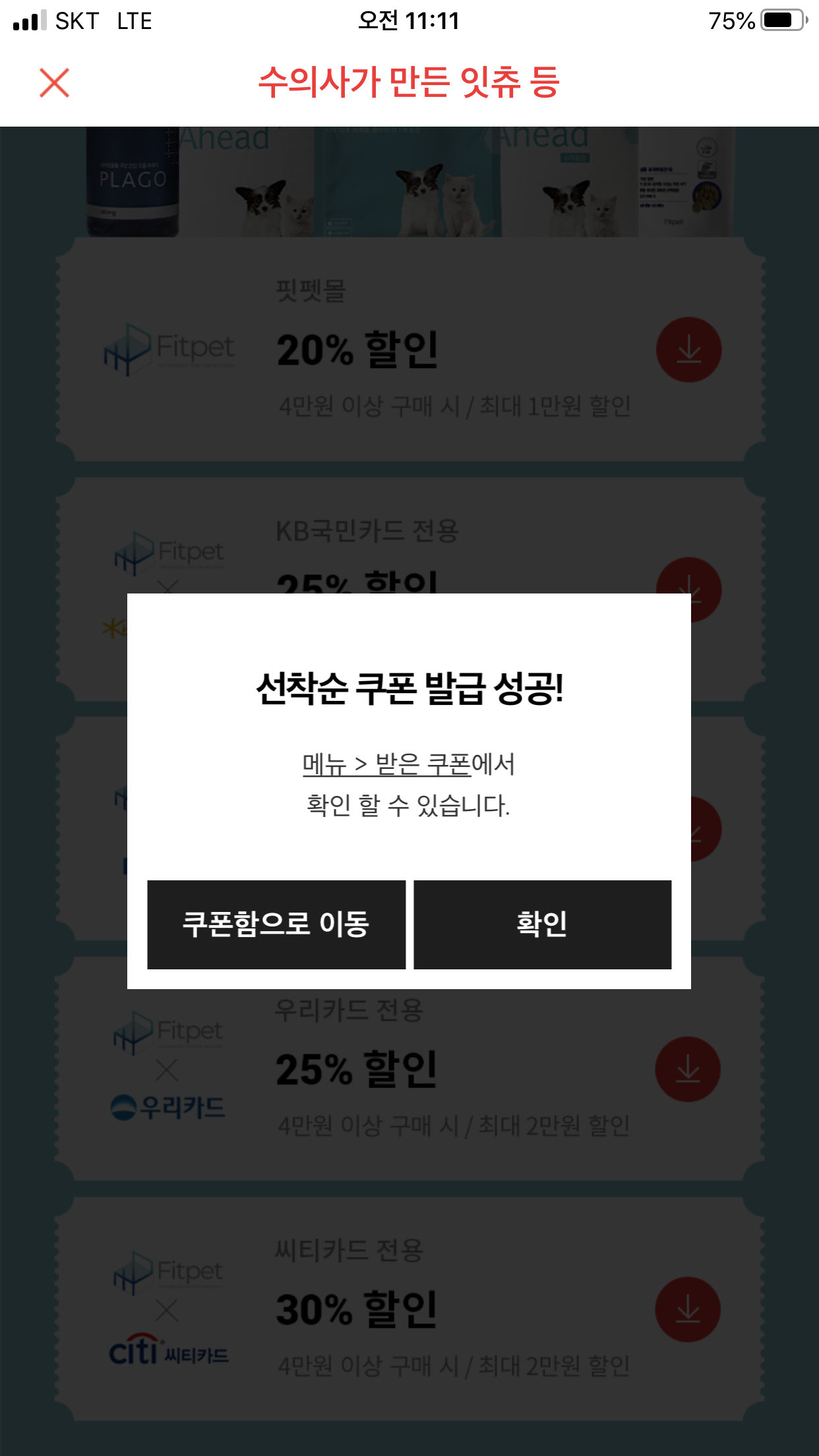 조금 더 보니 핏펫 상품에 대한 많은 할인 정보가 확인됩니다.