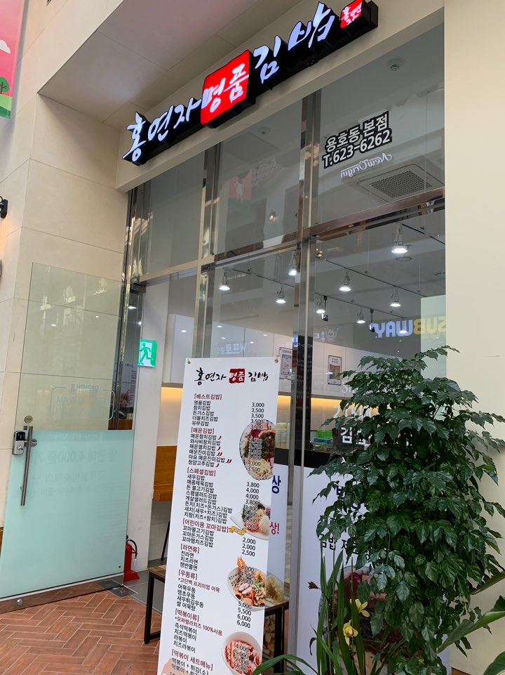 남구 용호동 w스퀘어 1층에 있는 '홍연자 명품 김밥'입니다. 이곳이 용호동 본점이라고 하더라구요.