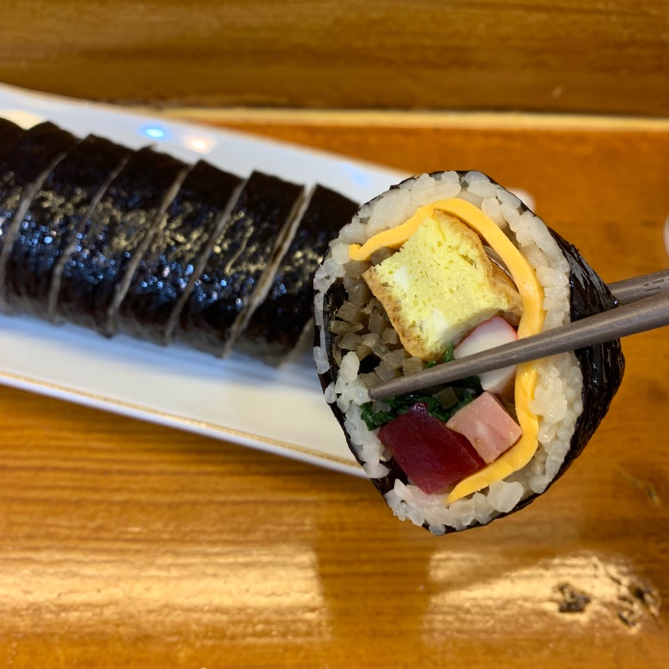 저는 참치 김밥에 깻잎이 들어가는 줄 알았는데 여기는 안 들어가네요. 그래도 참치마요는 맛이 없을 수 없는 조합이었습니다.